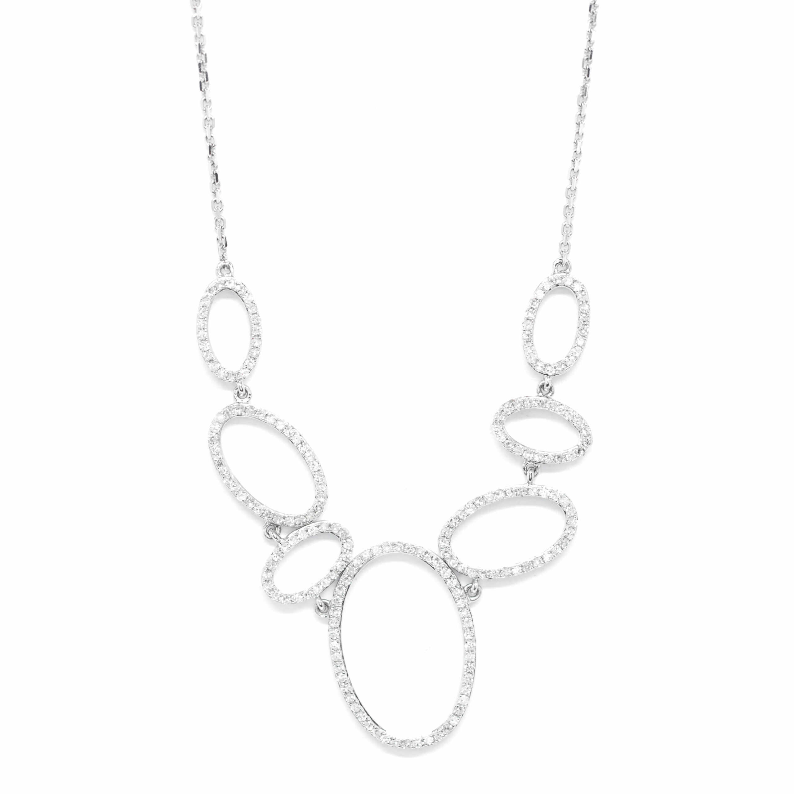 Κολλιέ-περιδέραιο από λευκόχρυσό Κ18 σε μοναδικά περίτεχνο σχεδιασμό διαχρονικής αισθητικής και διαμάντια κοπής brilliant . Ιδανικό για βραδινές elegant chic και all time classic εμφανίσεις. Brilliants total 0.98ct.