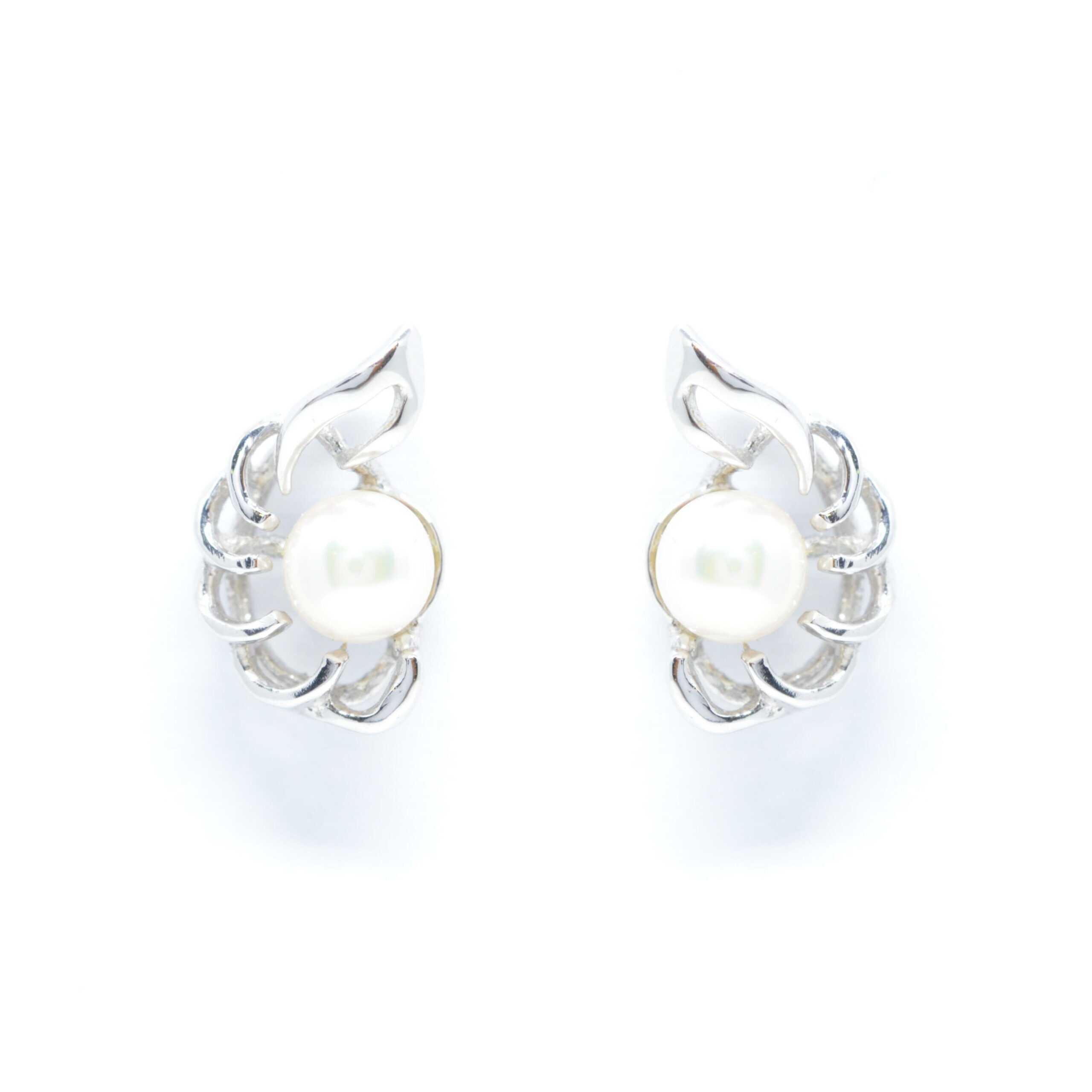 Σκουλαρίκια χρυσά επάνω στο αυτί με natural pearl.