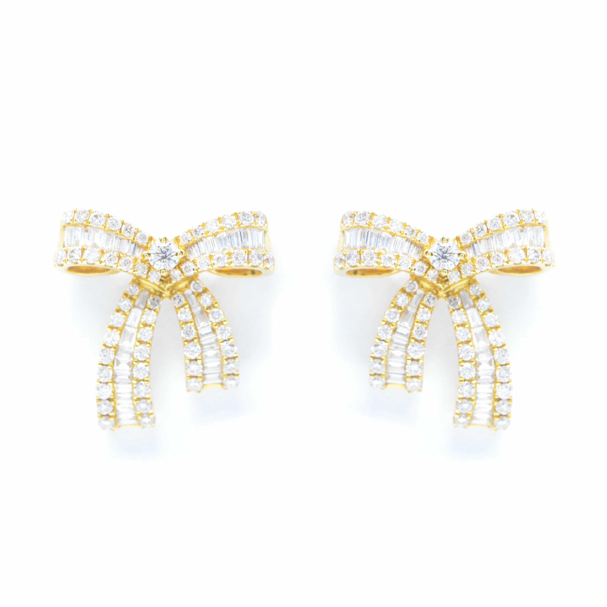 Σκουλαρίκια χρυσά επάνω στο αυτί με διαμάντια κοπής baguettes και κοπής brilliant και κούμπωμα με πύρρο. Baguettes 0.64 Brilliants 0.10ct.