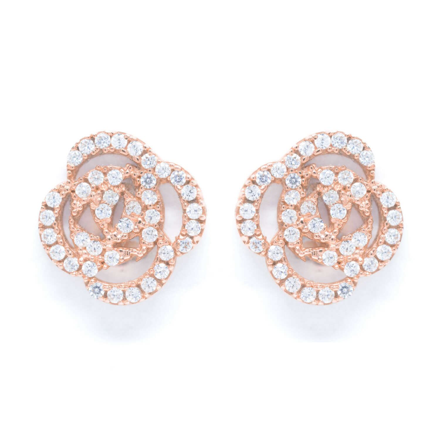 Σκουλαρίκια χρυσά επάνω στο αυτί με εντυπωσιακό σχέδιο-λουλούδι και cubic zirgons. Κούμπωμα με πύρρο.