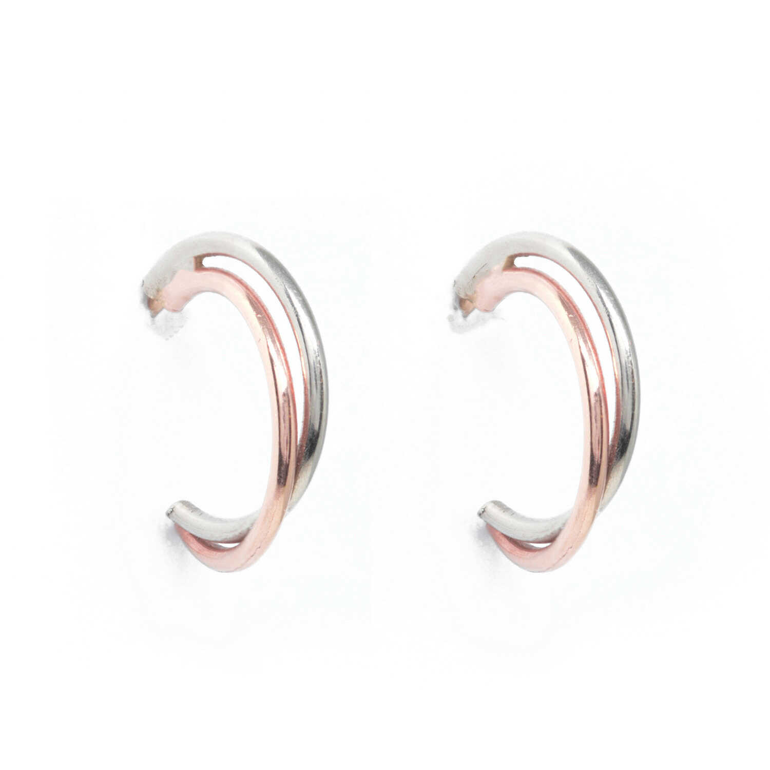 Σκουλαρίκια κρίκοι διπλοί δίχρωμοι με κούμπωμα με πύρρο.