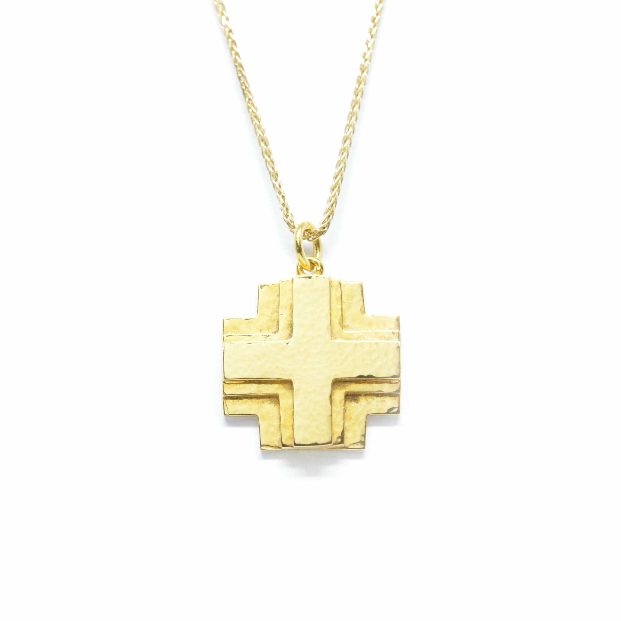 Σταυρός χρυσός ματ σφηρύλατος χειροποίητος σε εξαιρετικό σχεδιασμό. Διπλής όψεως. Ιδανικός και για βαπτιστικός.