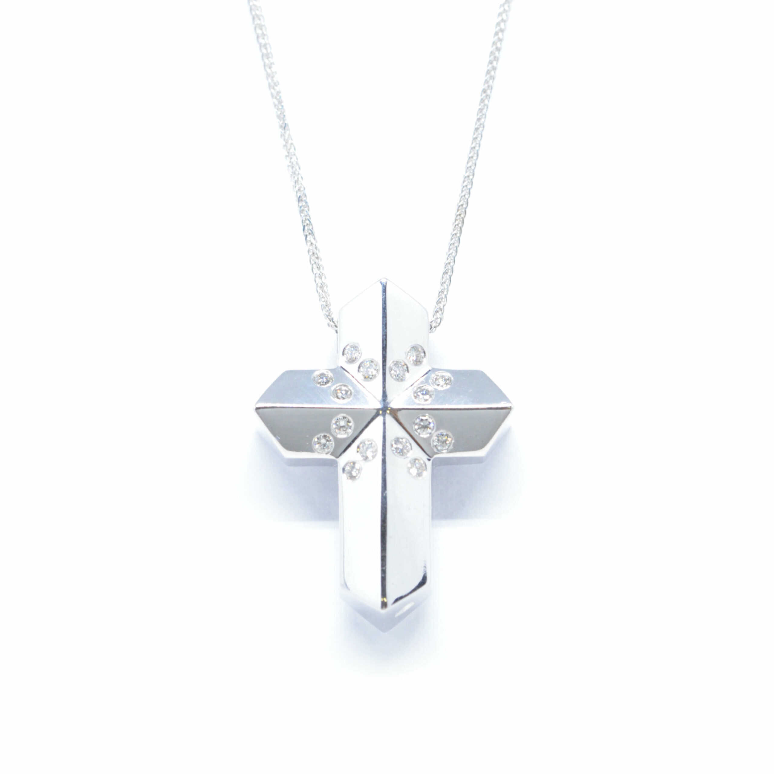 Σταυρός χρυσός γυαλιστερός σε εξαιρετικό minimal σχεδιασμό και διαμάντια κοπής brilliant. Brilliants 0.27ct. Ιδανικός και για βαπτιστικός.
