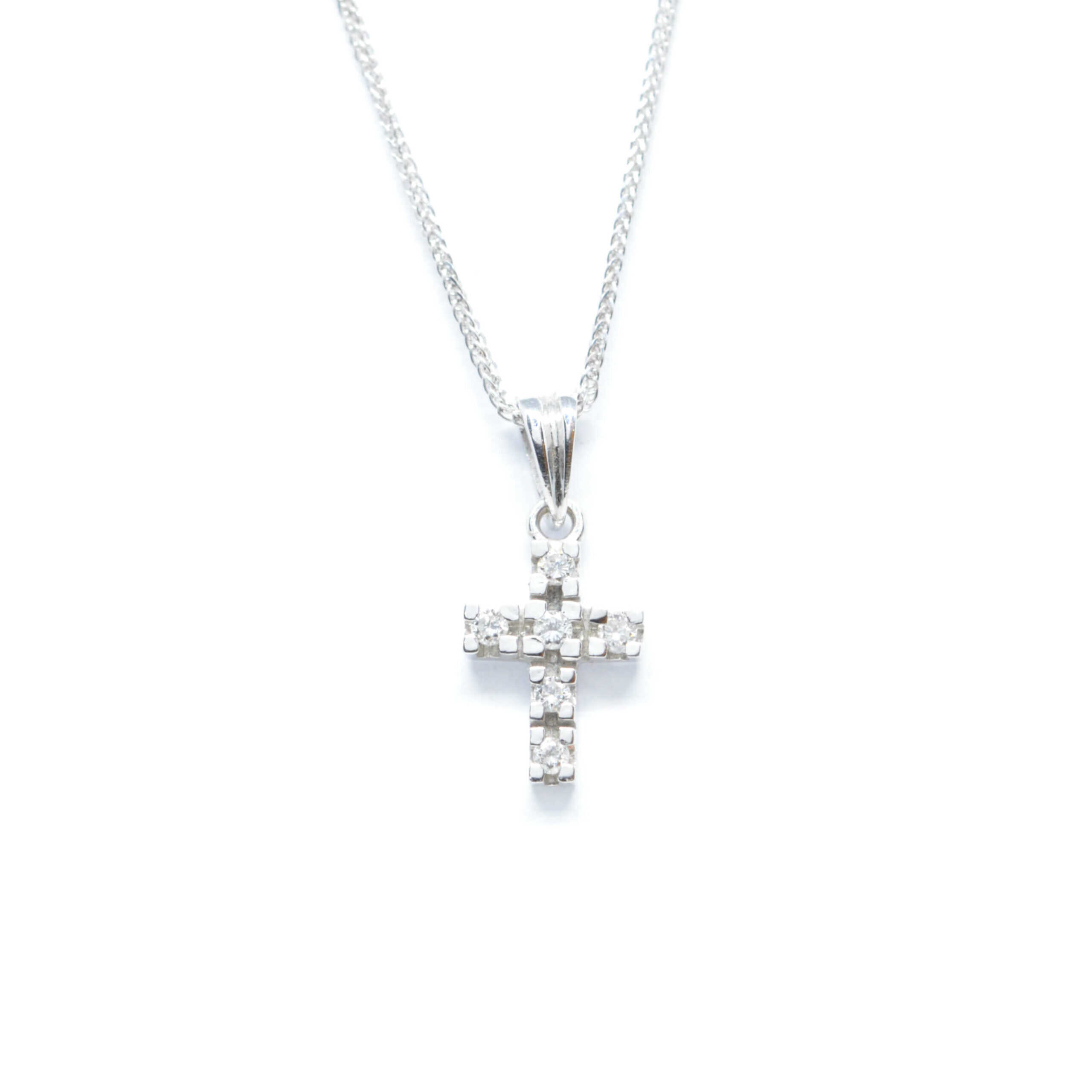 Σταυρός χρυσός σειρέ με διαμάντια κοπής brilliant σε εξαιρετικό minimal σχεδιασμό. Brilliants 0.18ct. Ιδανικός και για βαπτιστικός.