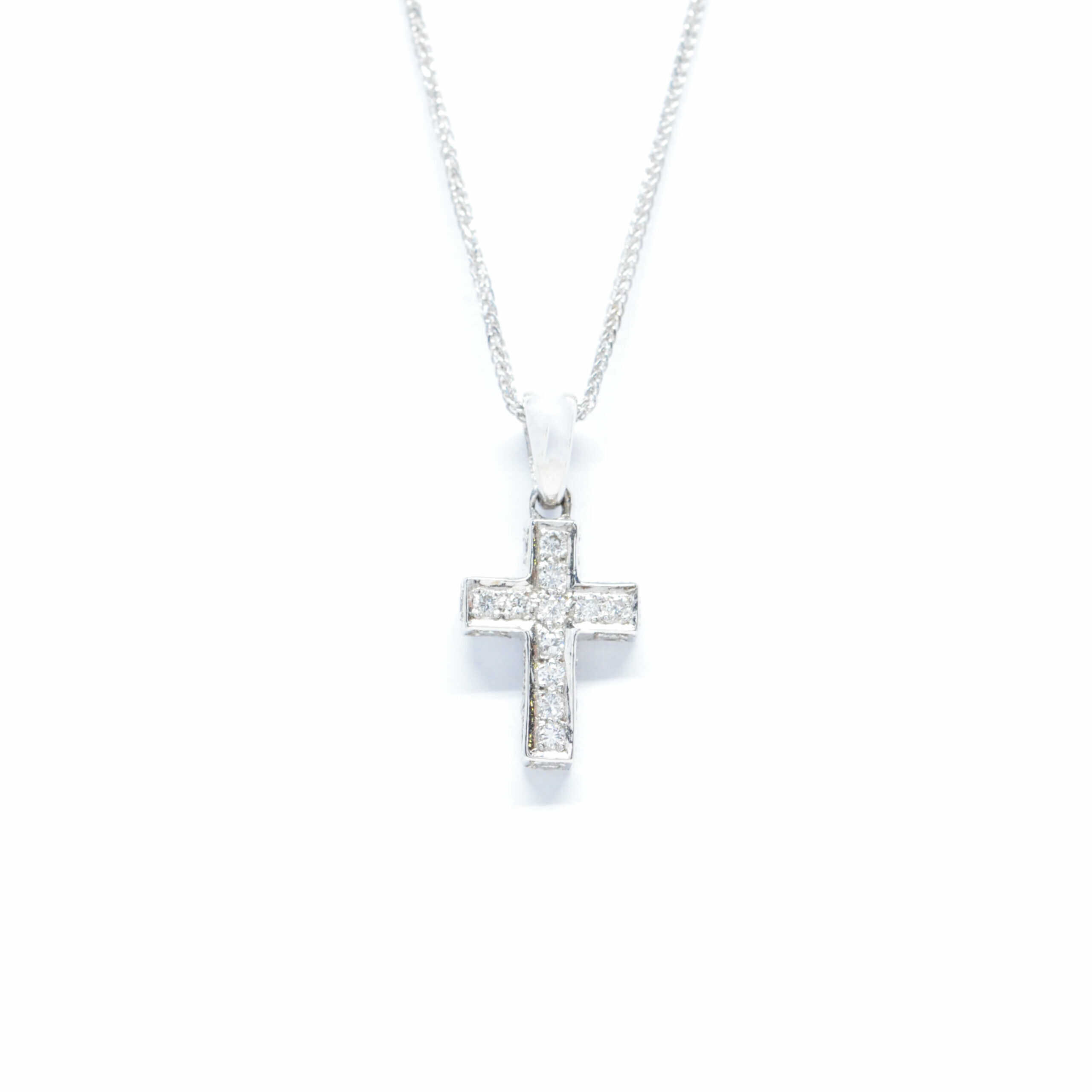 Σταυρός χρυσός με κάρφωμα pave και διαμάντια κοπής brilliant σε εξαιρετικό minimal σχεδιασμό. Brilliants 0.55ct. Ιδανικός και για βαπτιστικός.